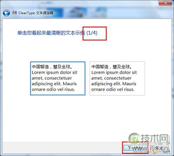 5.接下来会出现4种文本示例,用户可以根据个人感觉的清晰程度来选择,然后点击“下一步”