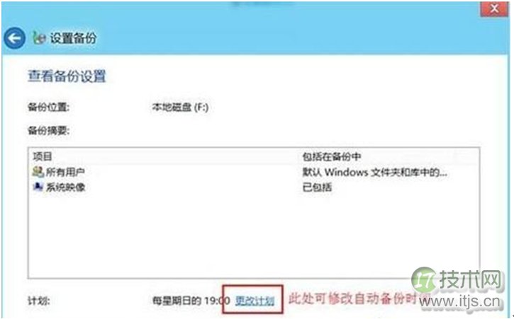 6、此时便可看到默认的计划备份时间,如需更改点击更改计划即可。设置完成后点击“保存设置并运行备份”;