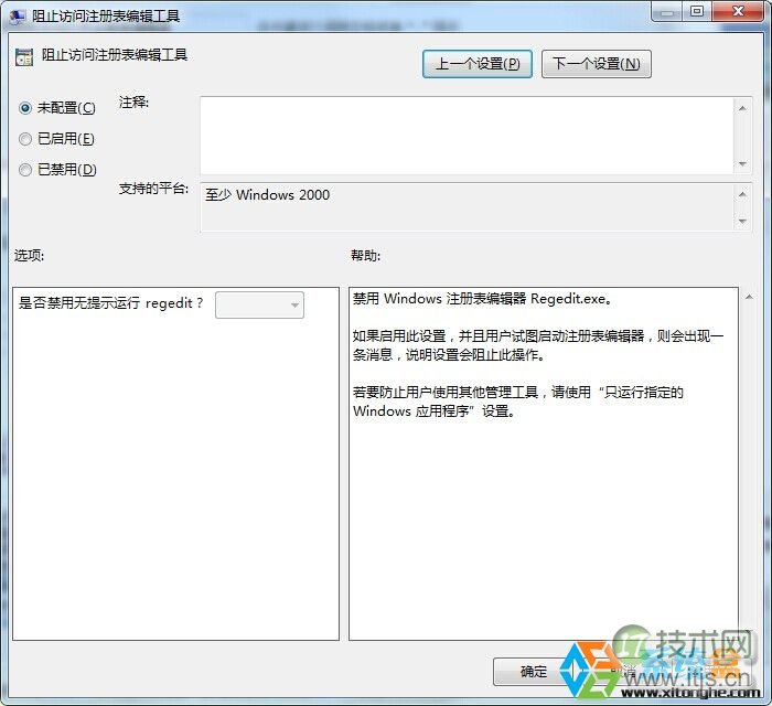 怎么样,很简单吧,几个步骤我们就完成了Windows 7旗舰版系统 http://www.xitonghe.com/Windows 7/ 禁用注册表的设置,假如又需要开启,将“阻止访问注册表编辑器”设置为未配置或禁用即可。小编就分享到这里,更多的精彩教程请关注