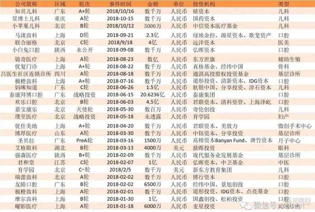 截至2018年11月1月,诊所类企业融资事件,数据来源:动脉网数据库