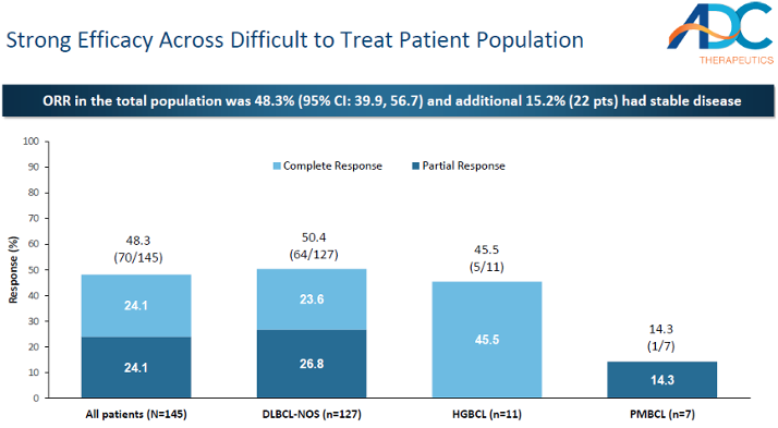 Zynlonta治疗DLBCL的总缓解率高达48.3%,完全缓解率为24.1%。中位持续缓解时间为10.25个月。