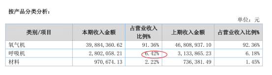 呼吸机占营收比例为6.42%: