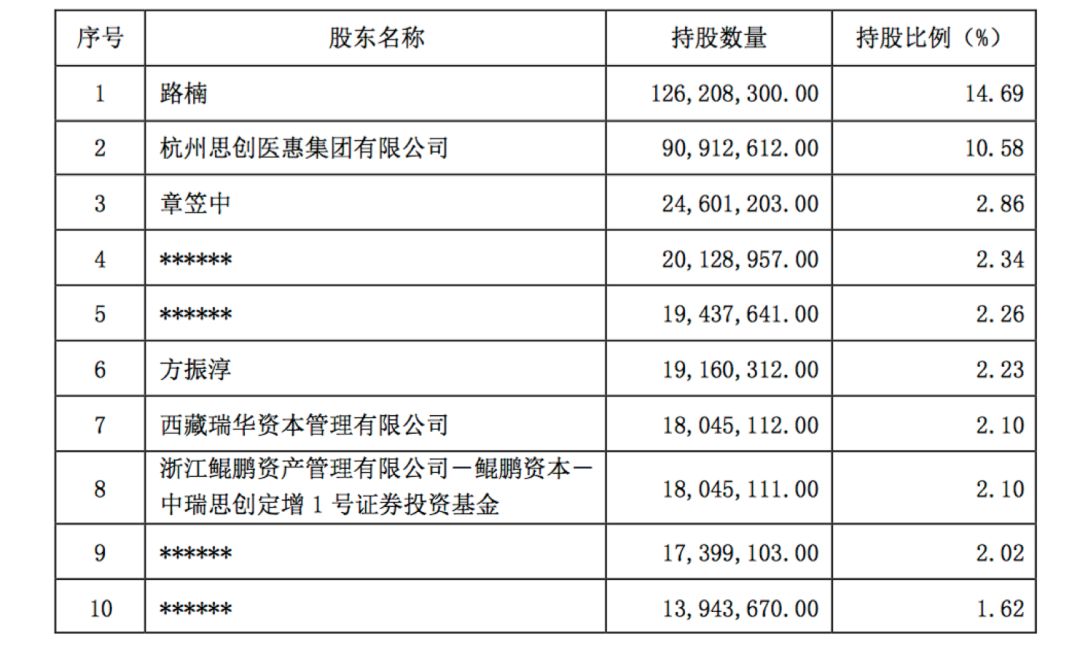 据统计,目前方振淳、西藏瑞华资本、鲲鹏资产三位股东共持有5525万股,占比6.43%,由于期间经历了数次分红、送股,公司粗略估算其实际成本在十几元上下,而思创医惠目前股价在13元多。