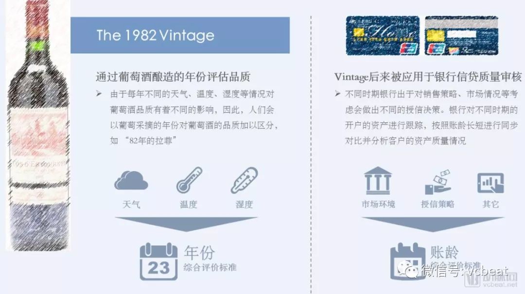Vintage在英文里是年限的概念,最初应用在酿造葡萄酒行业。在葡萄酒行业,由于每年不同的天气、温度、湿度等情况对葡萄酒品质有着不同的影响,因此,人们会以葡萄采摘的年份对葡萄酒的品质加以区分,例如“82年的拉菲”。1982年在波尔多地区的土壤温度以及种植品种是最优的,所以82年拉菲的质量最高。