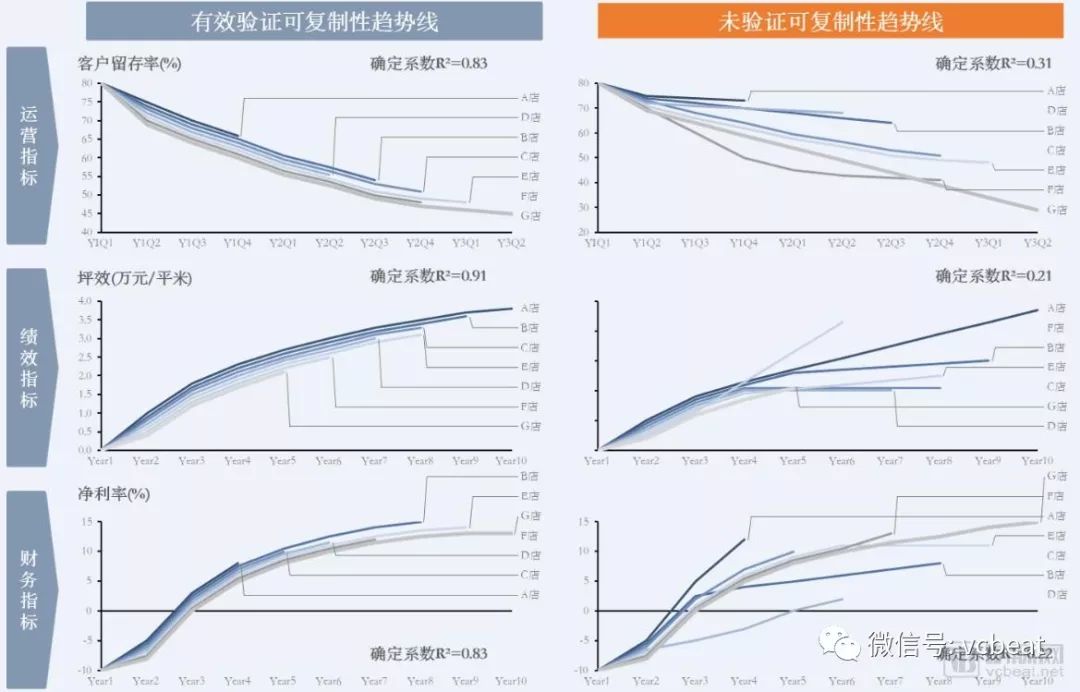 通过不同的指标,包括毛利率、净利率、留存率和增长率,可以分析不同单店运营情况是否能验证它的可复制性。该模型有两个作用: