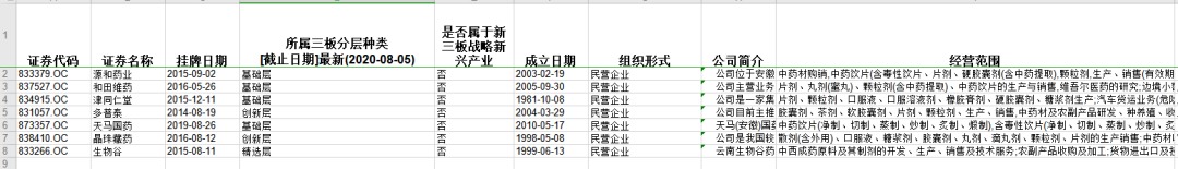 新三板上有:津同仁堂(OC:834915) 、红冠庄、春盛中药、芍花堂、汇群中药、坤七药业、