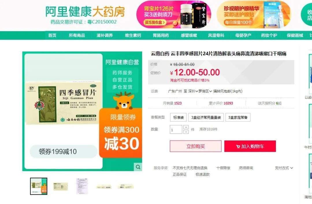 云南白药、同仁堂、白云山、东阿阿胶、华润三九的很多药品都是非处方中成药。