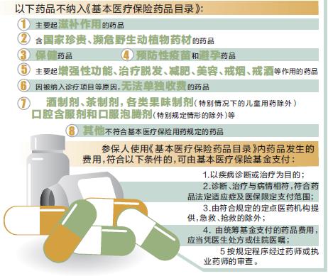 《办法》明确,8类药品不纳入《基本医疗保险药品目录》(详见图表)。