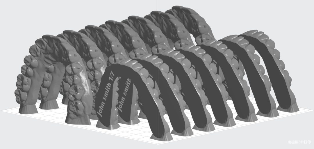 牙科矫正器的生产,需要使用专业的3D软件来设计30到40个牙套,这些牙套可以根据扫描数据调整患者的牙齿。然后将牙齿模型进行3D打印,并通过在模型上热成型生物相容性塑料来制作实际的矫治器。对于许多已经拥有3D打印机的正畸医生办公室来说,结合ArchForm的软件可以为他们节省成本,并让正畸医生完全控制治疗计划,ArchForm将自己的软件描述为 "易于使用的软件,可以通过自动一键功能更快地规划病例"。