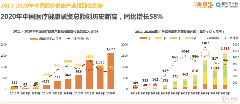 1.4 2020年中国医疗健康融资总额创历史新高,同比增长58%