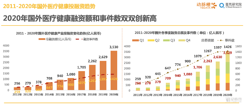 1.3 2020年国外医疗健康融资额和事件数双双创新高