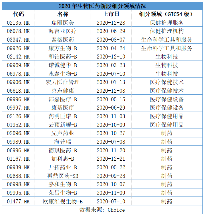 最后,从细分领域来看,生物科技新股成为医药领域赴港上市的主力军。