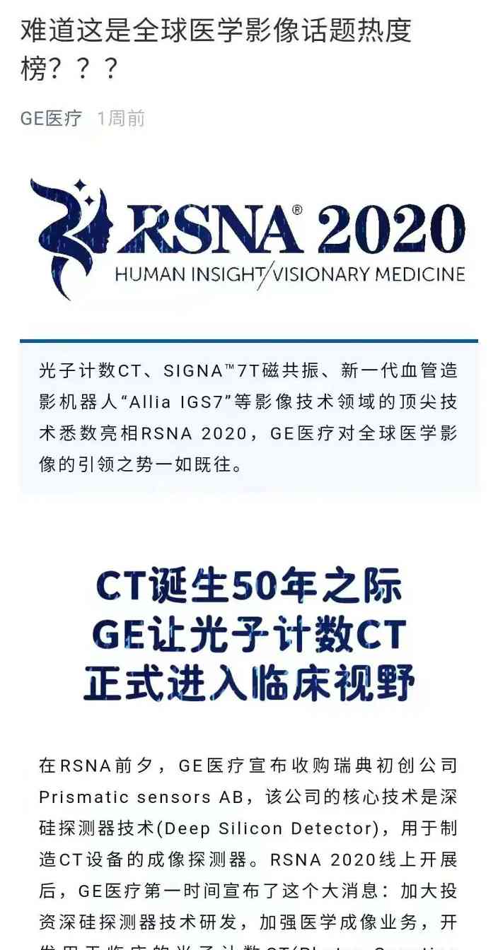 这也是全球医学影像界两大巨头第一次各自在微信平台官宣光子计数CT。