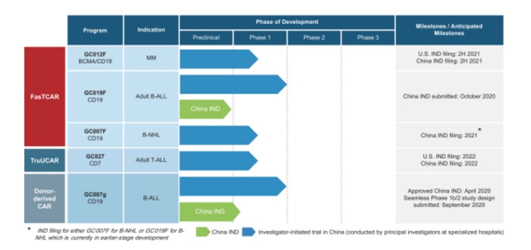 而基于TruUCAR平台下开发的GC027同种异体候选产品,则用于治疗复发性或难治性T细胞急性淋巴细胞白血病 (r/r T-ALL)。